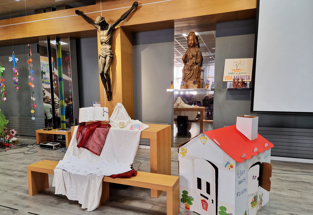 En esta iglesia del colegio de Tudela han tenido a lo largo del curso distintos conciertos-oración y tuvimos el regalo de poner música a esta oración. No vamos a describrila... porque la tienes que rezar. Verás lo especial que es. Te coge, te abraza, te inunda... no tiene desperdicio. Gracias amgi@s de Tudela por este REGALO!!.